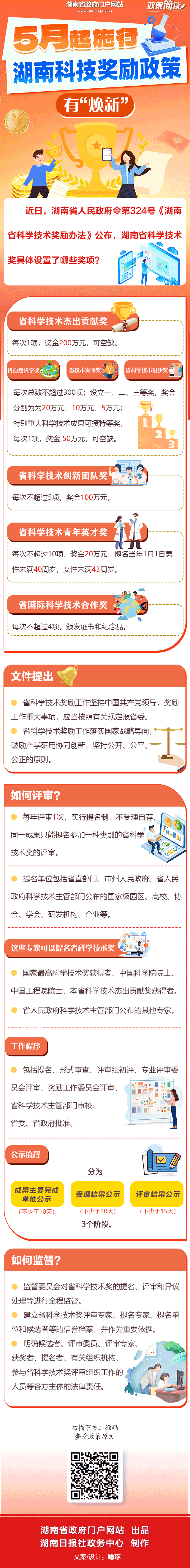 圖解:5月起施行 湖南科技獎勵政策有“煥新” 麻陽苗族自治縣人民政府 https://www.zwgsc.com 發布時間: 2025-03-17 14:07 【字體:大 小】 分享到 來源:湖南省政府門戶網站 作者: