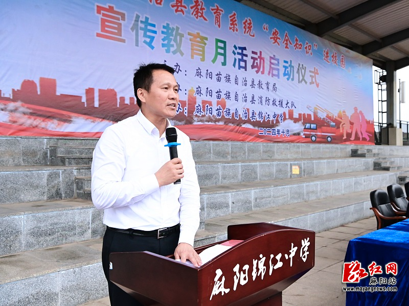 胡宏林在啟動儀式上致辭。他說,近年來,麻陽全縣上下牢記習近平總書記殷殷囑托,深入學習宣傳貫徹習近平總書記對安全生產工作的重要指示精神,紮實推進青少年安全教育、法治教育,平安校園、法治校園建設向縱深發展,為廣大師生營造了一個安全、和諧、穩定的學習工作環境。他希望,全縣各級各部門攜起手來,深入開展安全知識進校園宣傳教育活動,讓每一個孩子深耕安全常識、細育安全理念、健康安全成才;教育係統要切實把思想和行動統一到縣委、縣政府的決策部署上來,在省、市教育主管部門的關心支持下,埋頭苦幹、勇毅前行,奮力開創麻陽教育事業高質量發展新篇章。
