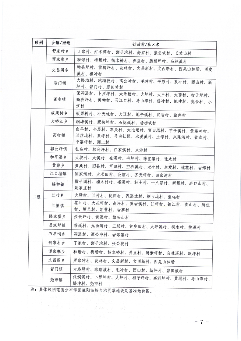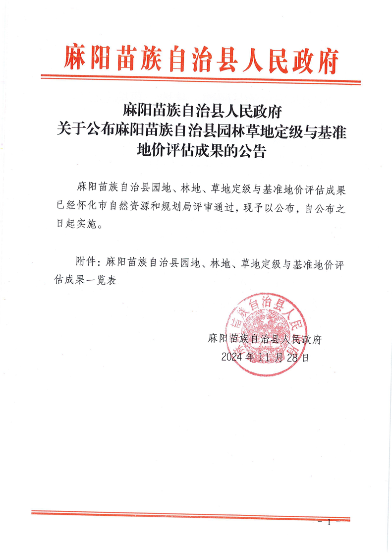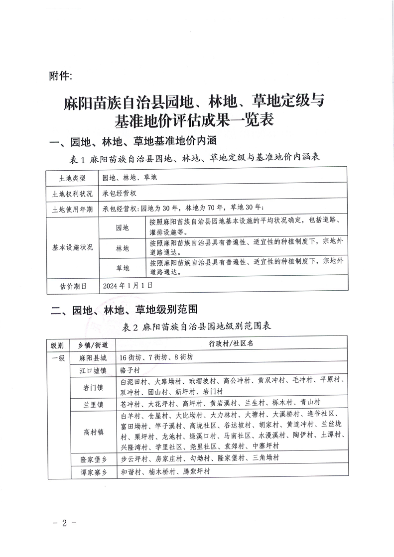 麻陽苗族自治縣人民政府關於公布麻陽苗族自治縣園林草地定級與基準地價評估成果的公告