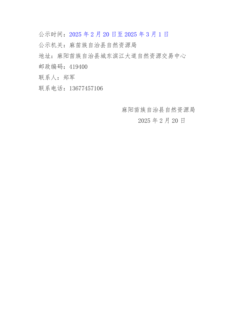 麻陽苗族自治縣自然資源局關於2025年麻陽縣第一批土地儲備領域申報地方政府專項債券項目用地收儲價格的公示 麻陽苗族自治縣人民政府 https://www.zwgsc.com 發布時間: 2025-02-20 10:00 【字體:大 小】 分享到 來源:麻陽縣自然資源局 作者: