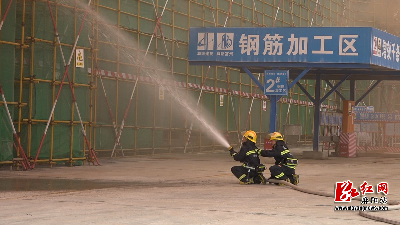演練模擬麻陽苗族自治縣城西貨運停車場項目3#棟二層一工人違反操作規程,在施工現場吸煙並將煙頭隨意丟棄至易燃建材中引發火災,火勢迅速向周邊蔓延並產生大量濃煙。正在施工現場進行巡查的安全員發現火災情況,迅速向現場指揮長匯報,現場指揮長立即啟動應急預案,並向消防部門報警,請求120救援滅火。