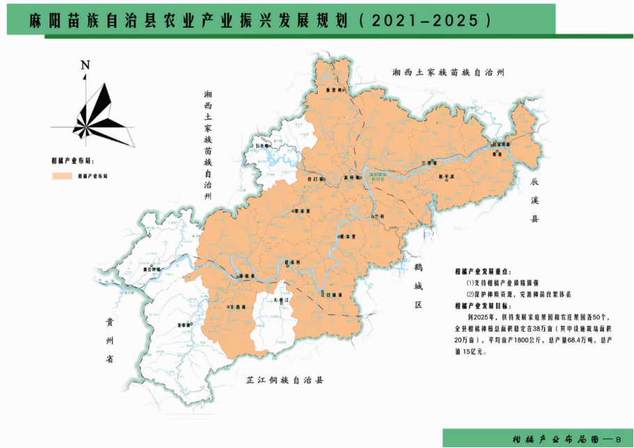 根據上級文件精神及麻陽產業及村鎮發展現狀,高村、岩門等鄉鎮明確了柑橘為主導產業,積極申報產業強鎮。