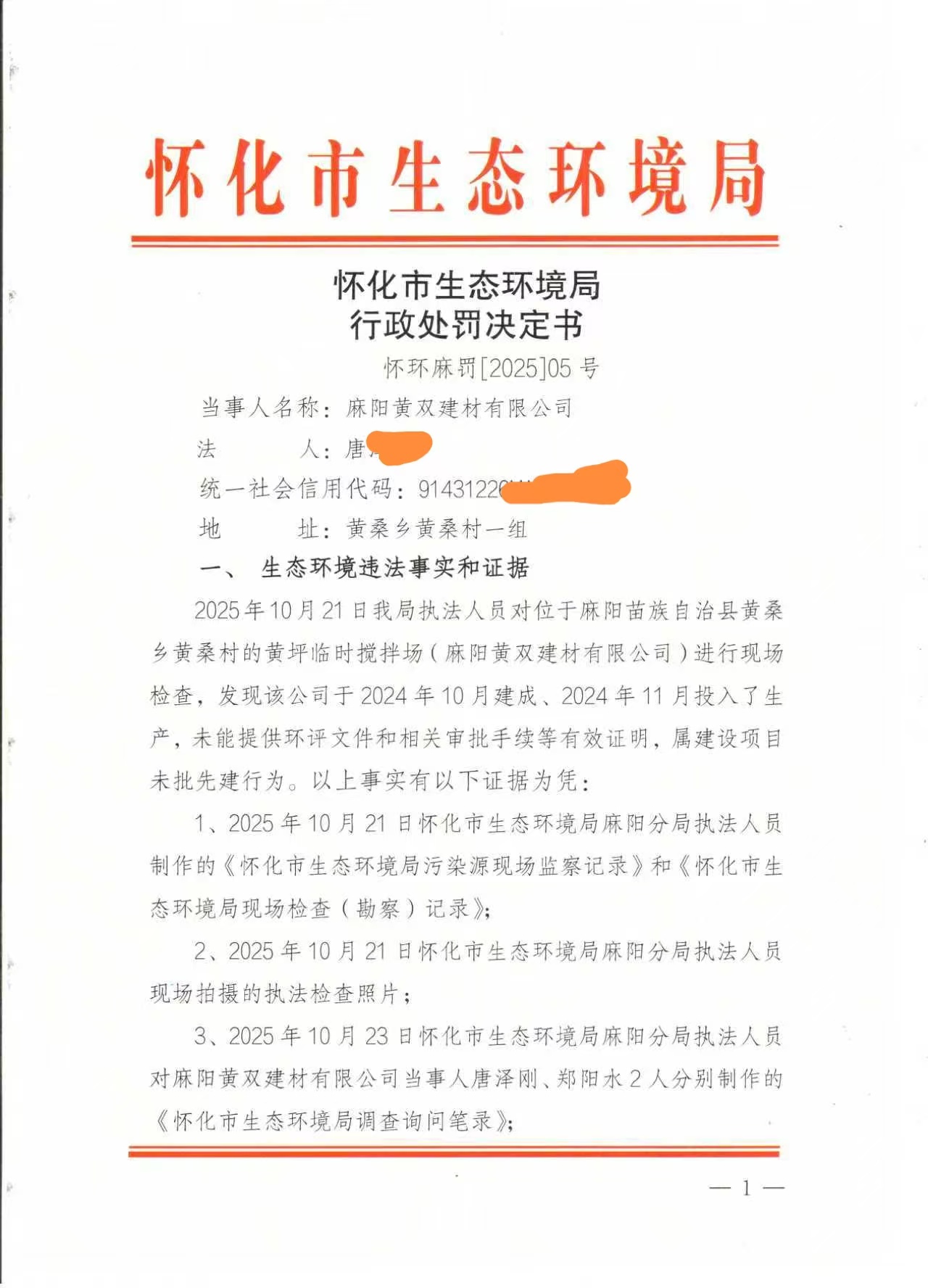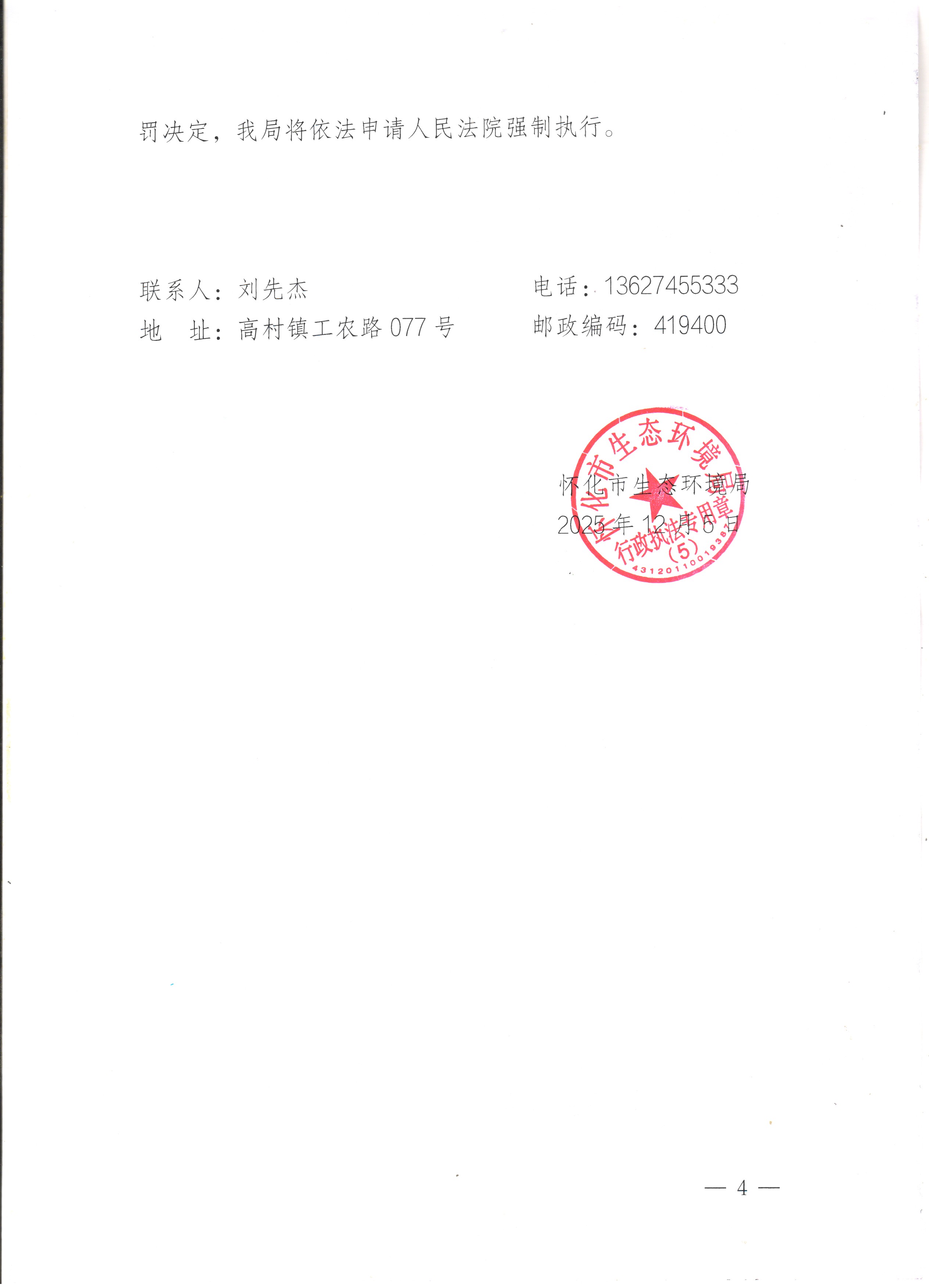 懷化市生態環境局行政處罰決定書 懷環麻罰〔2025〕05號