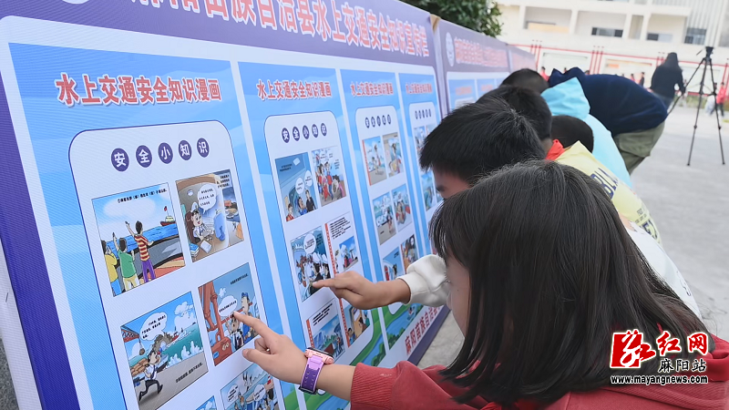 活動現場,縣交通運輸局、縣水運事務中心工作人員將準備好的水上交通安全知識宣傳手冊和救生衣搬下車,並展出宣傳欄。課間休息的學生們懷著一雙雙求知的眼神紛紛前來閱讀宣傳欄,大家互相交流,對宣傳欄裏的安全知識漫畫、知識標識、安全交通工具及落水自救技巧等知識進行了係統的學習。