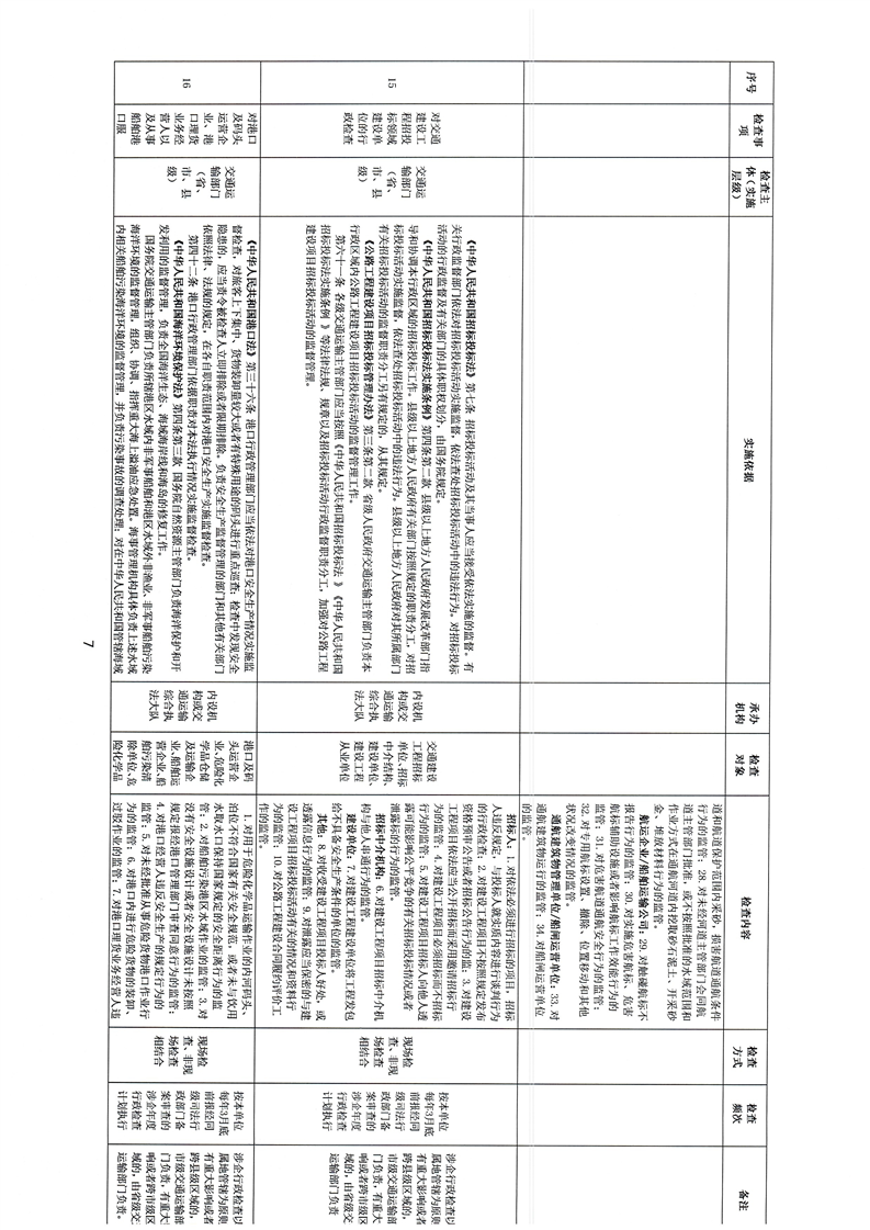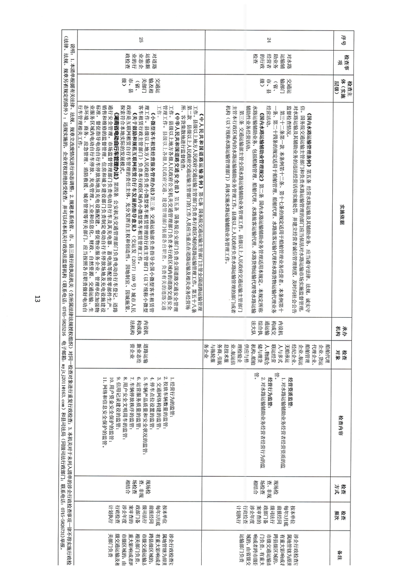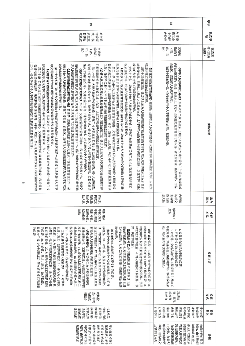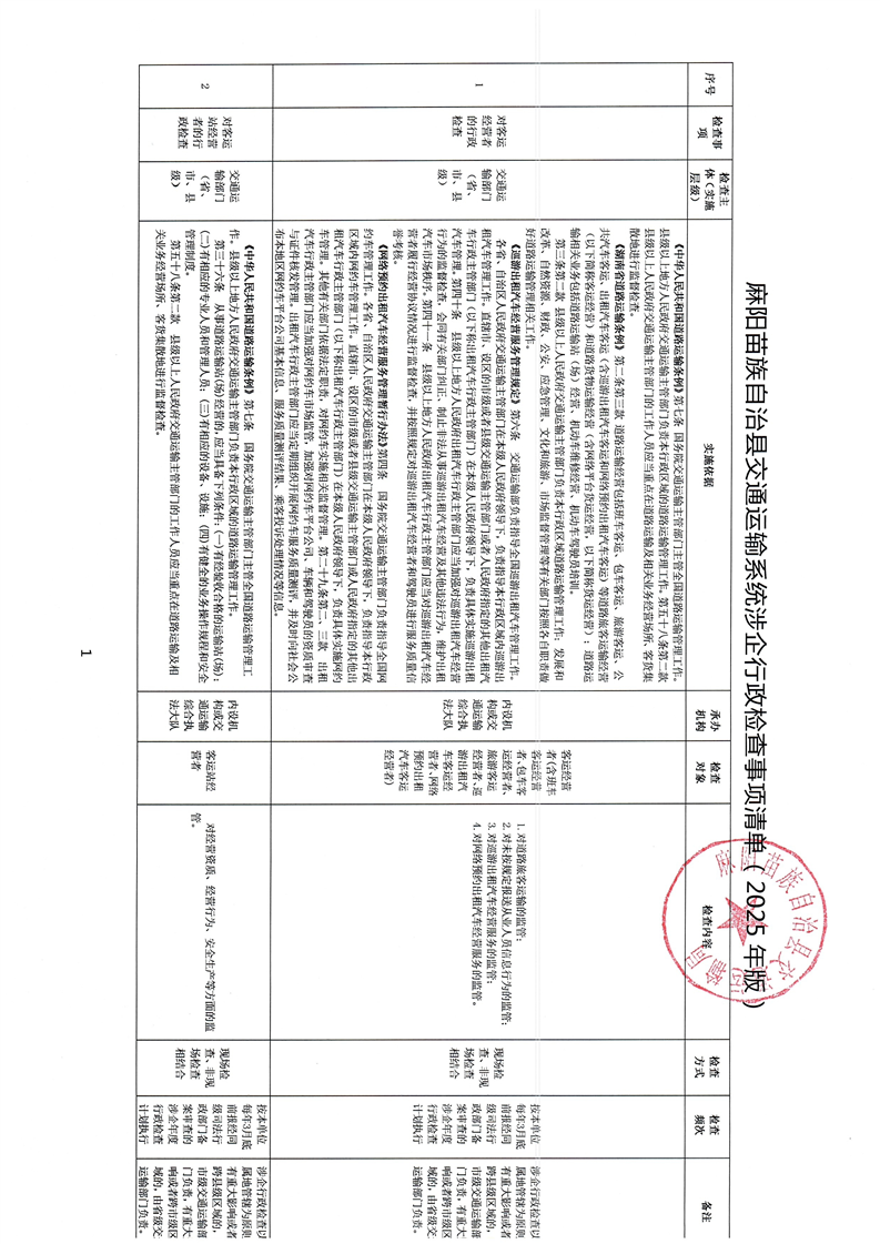 麻陽苗族自治縣交通運輸係統涉企行政檢查事項清單