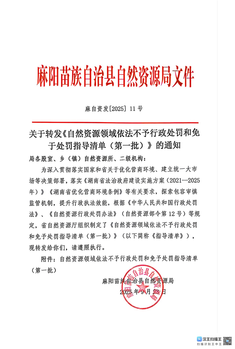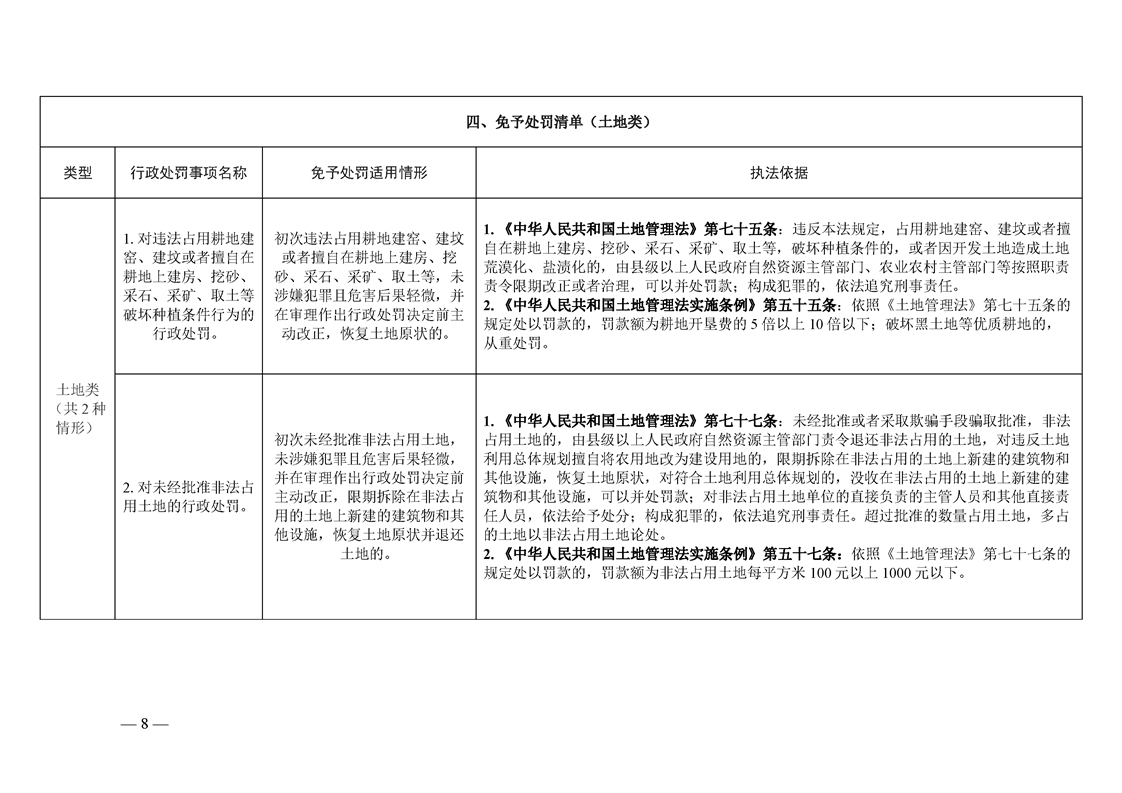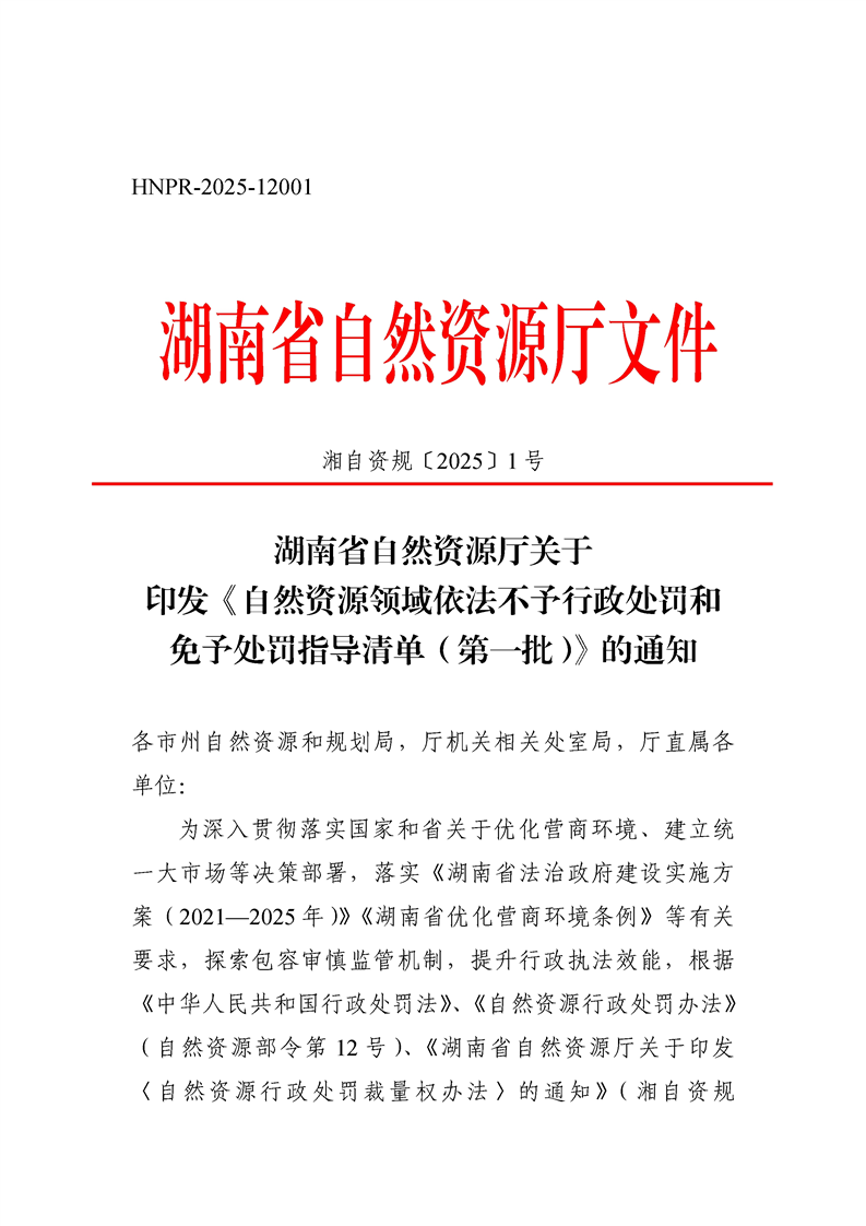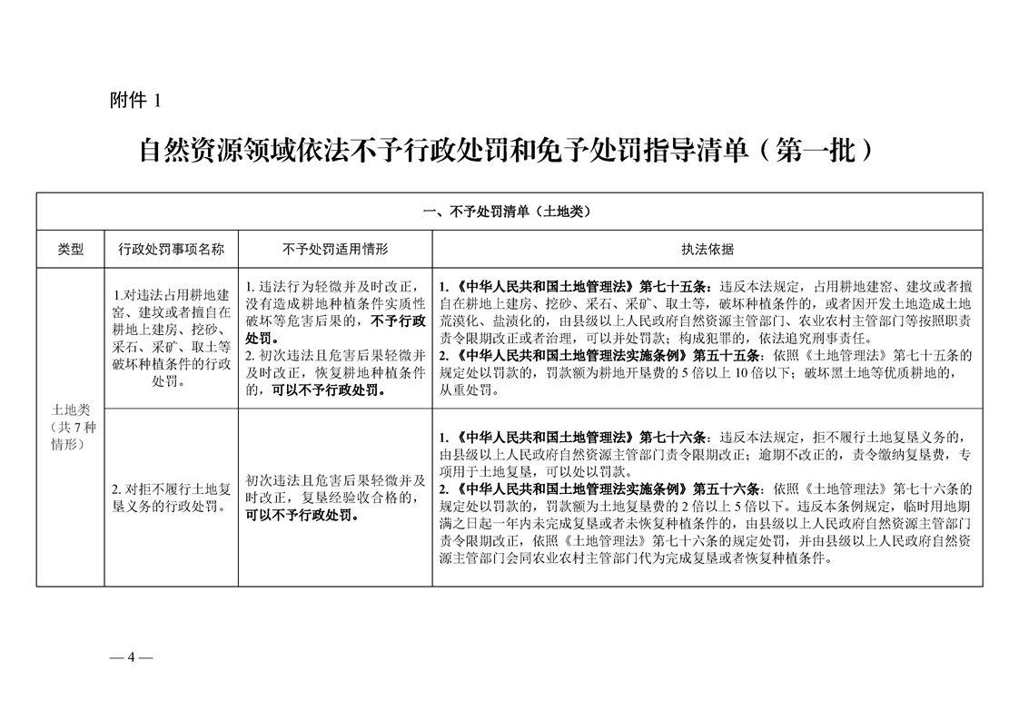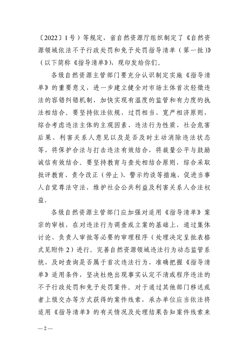 關於《自然資源領域不予行政處罰和免於處罰指導清單(第一批)》的通知