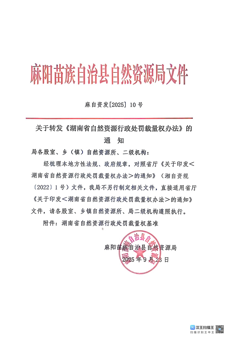 關於轉發《湖南省自然資源廳行政處罰裁量權辦法》的通知