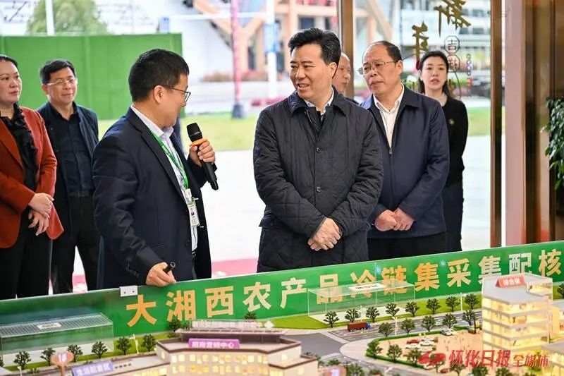 ▲3月25日上午,市委副書記、市長黎春秋赴麻陽開展調研。圖為在中國供銷·麻陽智慧農產品冷鏈物流園,黎春秋詳細了解規劃布局、項目進展等情況。