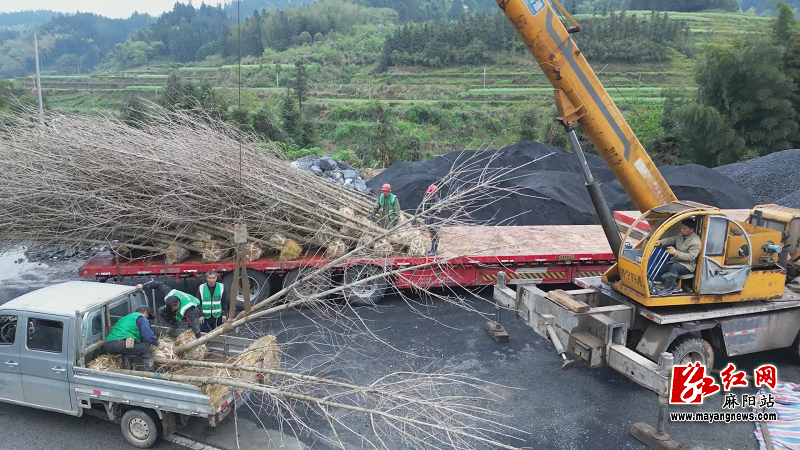 連日來,在麻陽堯市鎮集鎮至橋衝村道路兩旁,鄉鎮工作人員及鄉賢張紹興正組織吊車、皮卡車裝運銀杏樹苗,50多名村民忙著搬銀杏樹苗,挖坑、扶苗、培土、澆水……現場一派熱火朝天的植樹景象。