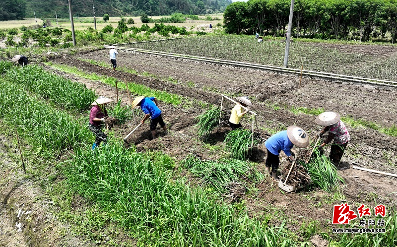 4月28日,在麻陽苗族自治縣舒家村鄉舒家村村田間地,10多位村民正忙著栽植最後一批甘蔗幼苗。目前,舒家村村已栽植了700多畝甘蔗。