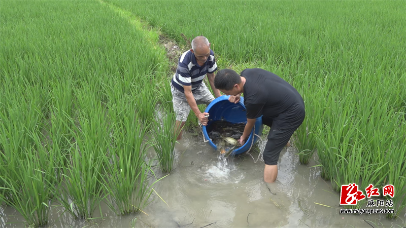大橋江村稻花魚苗的放養,也得到了麻陽畜牧水產事務中心的大力支持。在稻花魚的放養過程中,該中心工作人員針對圍繞花魚養殖管理中的難題以及稻花魚成魚的收魚時間、方法等“稻魚共生”知識,給村民進行了全麵講解。村民們也滿懷信心地表示,會充分利用“稻魚共生”理論,做到以魚促稻、以稻養魚,有效提高稻田綜合效益。