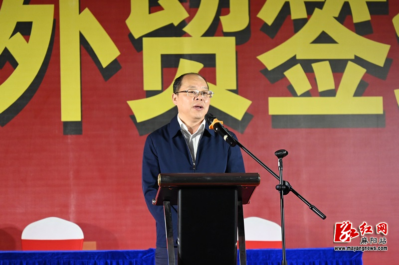 胡宏林對麻陽森佳箱包有限公司新廠搬遷揭牌暨外貿簽約表示熱烈祝賀,對到麻陽投資合作的外國企業家朋友表示熱忱歡迎。胡宏林說,長壽麻陽,常來長壽。麻陽享有“世界長壽鄉”“中國冰糖橙之都”“中國最美養生棲居地”“中國康養百佳縣”等諸多美譽,自然資源豐富,交通區位優勢明顯,麻陽將搶抓曆史機遇,進一步依托懷化國際陸港、東盟貨運集結中心和西部陸海新通道優勢,讓麻陽更多更好的產品實現跨山出海、共贏發展。麻陽將繼續優化營商環境,為國內外企業家生產經營提供更加高效、便利、優質的服務環境和投資環境;進一步加大政策、科技、金融等扶持,建好產業園區,為企業營造更好的生產環境,助力在麻陽投資的企業做大做強。誠邀外國客商來麻投資興業,我縣將以最大力度、最高效率全方位做好服務保障,著力營造一流營商環境,讓各位企業家安心創業、放心經營、舒心發展。