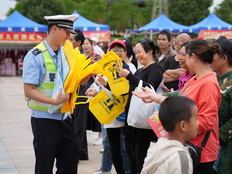 活動在歌舞表演中拉開帷幕,獨唱、舞蹈、樂器演奏等各類精彩節目輪番上演。此次演出將交通安全宣傳和地域文化特色相融合,通過快板、花燈戲、小品等多種表演形式,為現場觀眾呈現一場豐富多彩的交通安全視聽宣講盛宴。除現場精彩演繹和互動活動外,民輔警還以交通安全出行為切入點,現場發放宣傳資料、宣傳物品、麵對麵答疑,以“一盔一帶”“一老一小”等主題開展宣教,用身邊人、身邊事將交通安全知識講到群眾的心坎裏,引導大家出行時自覺遵守交規,摒棄各類交通陋習。