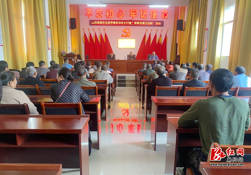 10月9日,麻陽苗族自治縣總工會在譚家寨鄉楠木橋村開展“跟著勞模去創新”勞模宣講活動。譚家寨鄉政府幹部職工、村支兩委班子和村民代表共計56人聆聽了宣講。