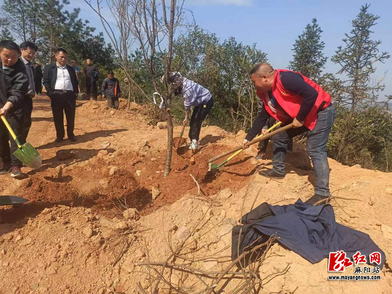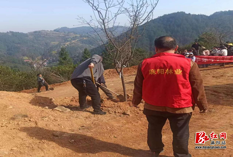 3月12日,在麻陽苗族自治縣高村鎮富田坳村富子坳羊肚坡上,林業技術人員正在指導種植大戶栽植300餘株櫻花大苗,詳細講解櫻花大苗的栽植流程和注意事項。
