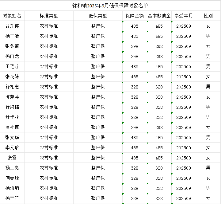 【社會救助】錦和鎮2025年9月低保保障對象名單 麻陽苗族自治縣人民政府 https://www.zwgsc.com 發布時間: 2025-09-15 10:43 【字體:大 小】 備注:正文隻展示部分信息,完整信息請下載附件瀏覽 附件:【社會救助】錦和鎮2025年9月低保保障對象名單 分享到 來源:麻陽縣錦和鎮 作者: