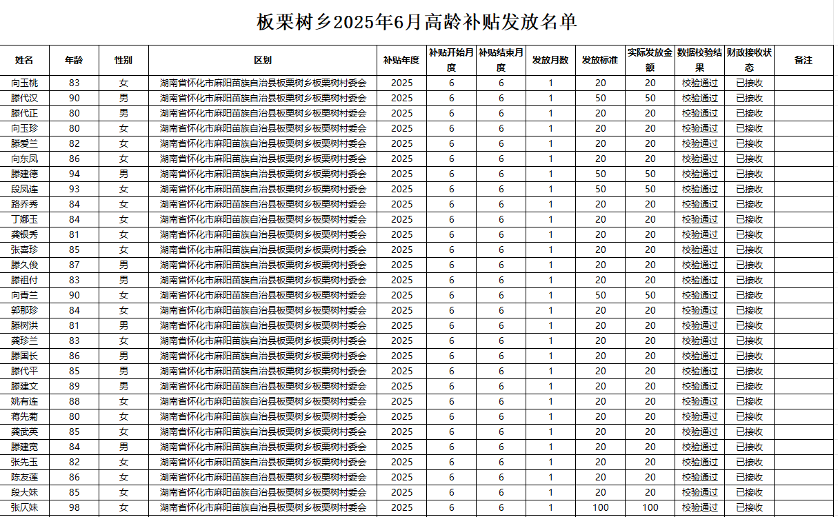 附件:【養老服務】板栗樹鄉2025年6月高齡補貼發放名單