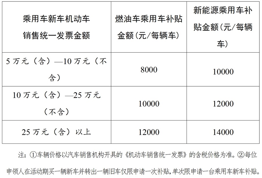 答:對報廢上述兩類舊車並購買新能源乘用車的,補貼2萬元;對報廢國三及以下排放標準燃油乘用車並購買2.0升及以下排量燃油乘用車的,補貼1.5萬元。
