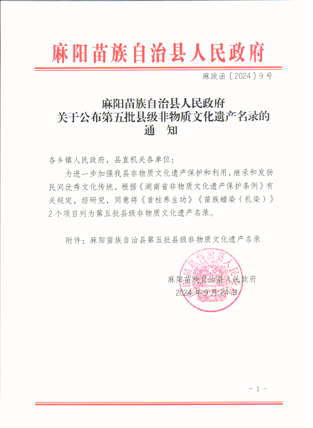 麻陽苗族自治縣人民政府關於公布第五批縣級非物質文化遺產名錄的通知 麻陽苗族自治縣人民政府 https://www.zwgsc.com 發布時間: 2024-09-26 10:09 【字體:大 小】 分享到 來源: 作者: