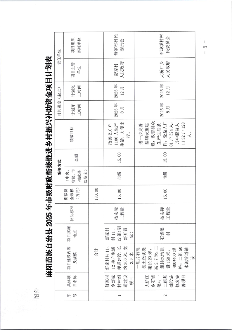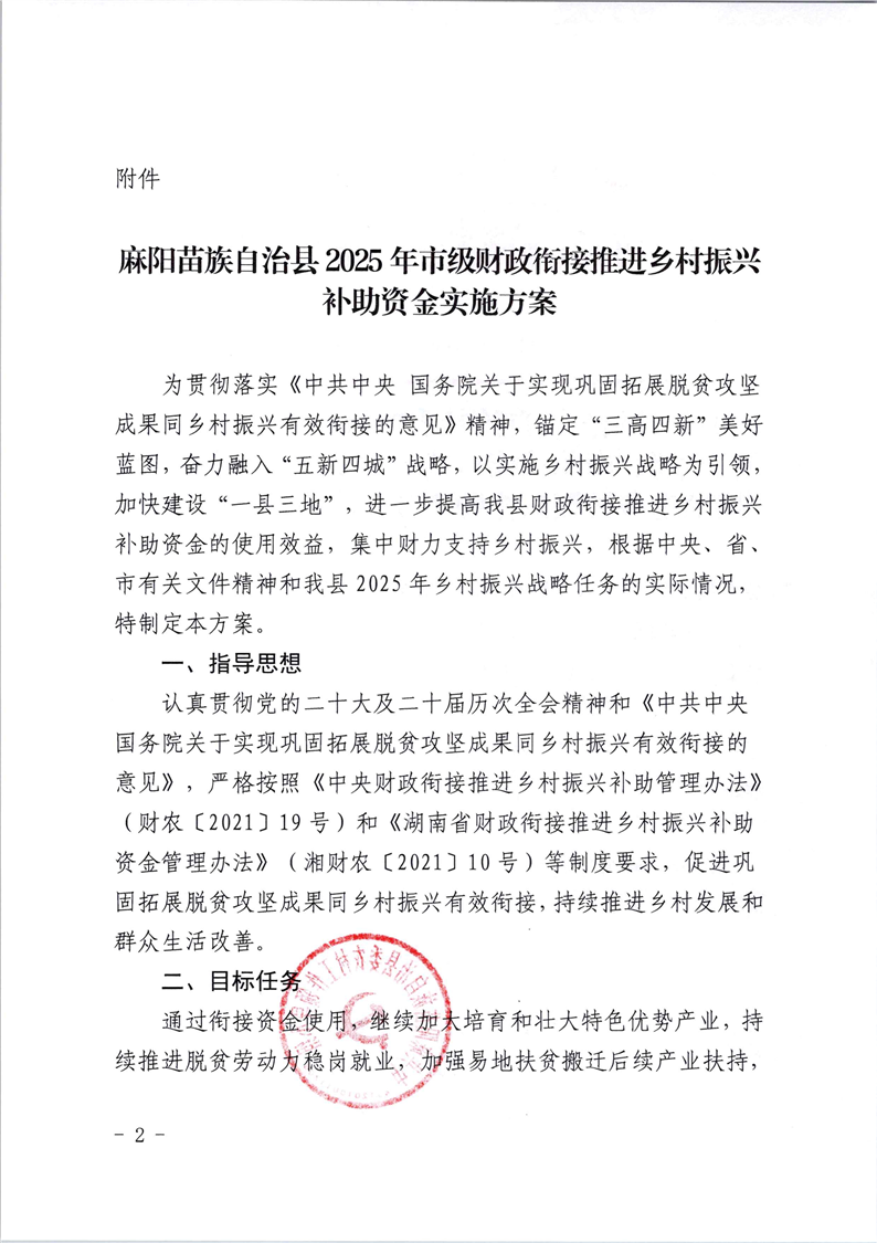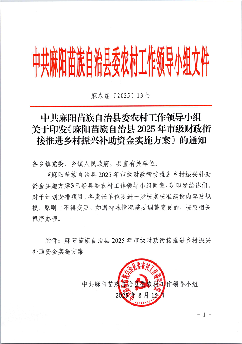 中共麻陽苗族自治縣委農村工作領導小組關於印發《麻陽苗族自治縣2025年市級財政銜接推進鄉村振興補助資金實施方案》的通知 麻陽苗族自治縣人民政府 https://www.zwgsc.com 發布時間: 2025-08-15 15:45 【字體:大 小】 分享到 來源:麻陽縣農業農村局 作者: