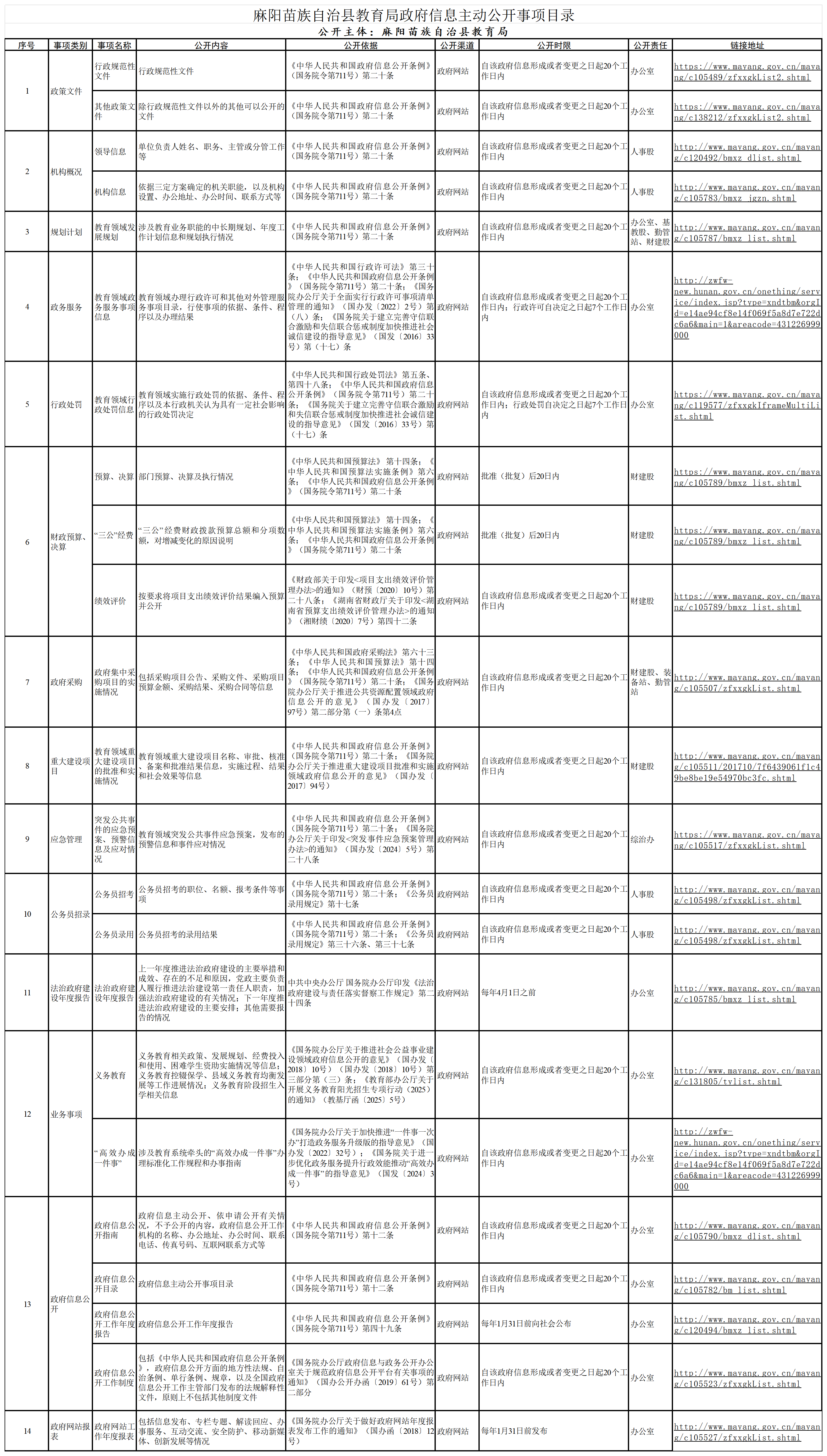 麻陽苗族自治縣教育局政府信息主動公開事項目錄