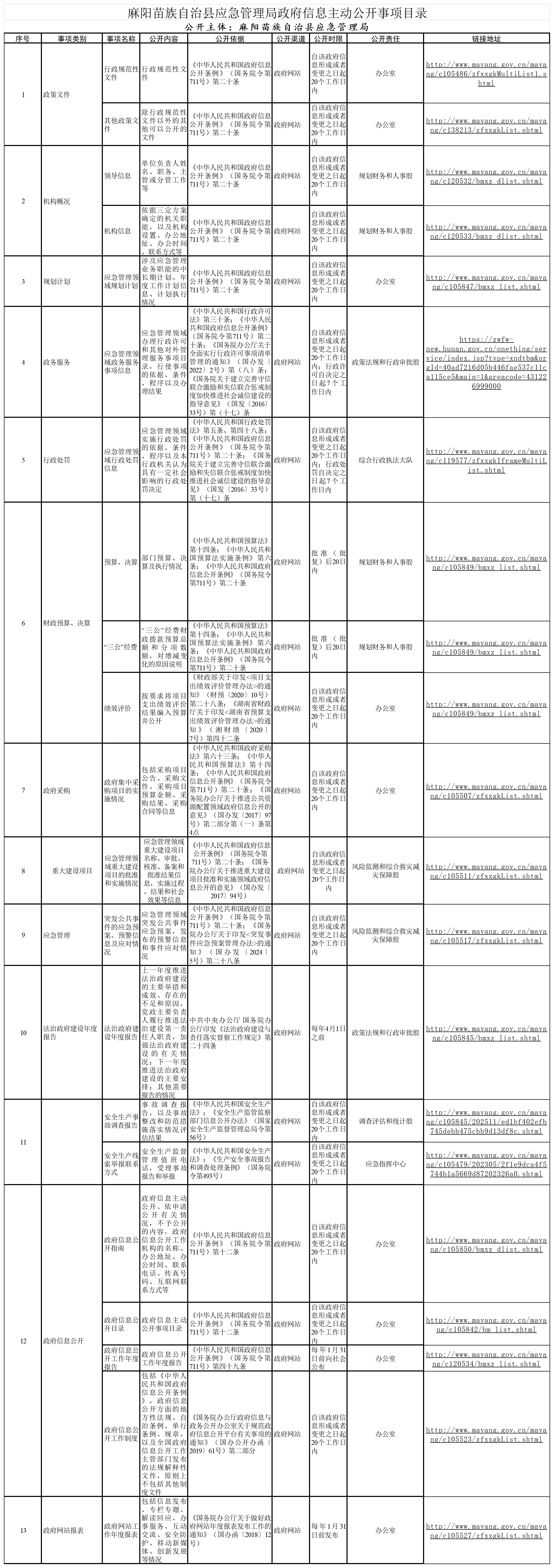 麻陽苗族自治縣應急管理局政府信息主動公開事項目錄