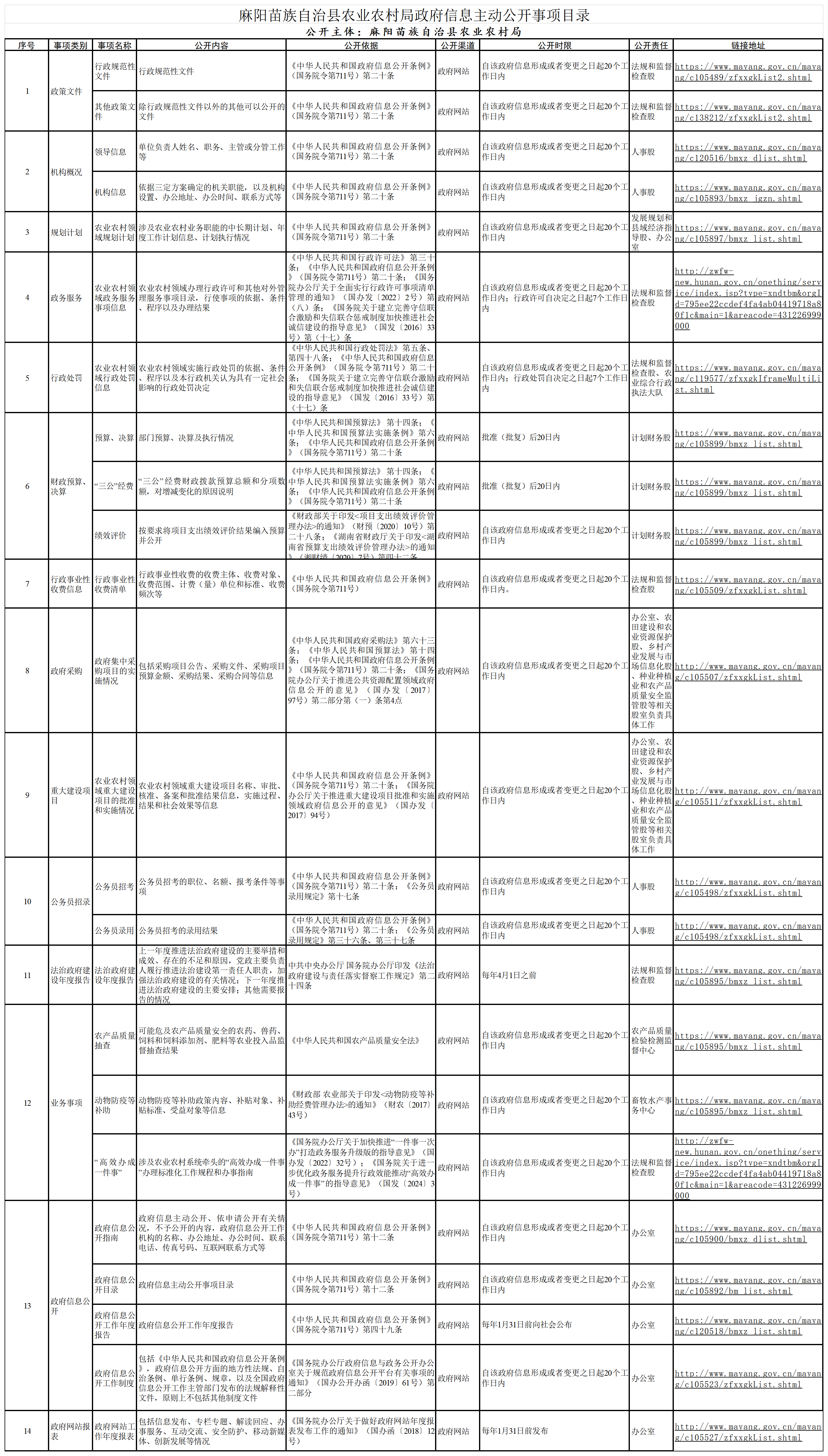 麻陽苗族自治縣農業農村局政府信息主動公開事項目錄